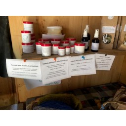 Desinfectant et cicatrisant dans une petite bouteille qui pschiiit composition : Alcoolature de plantain et de soucis (calendula) . Alcool a env. 70degré